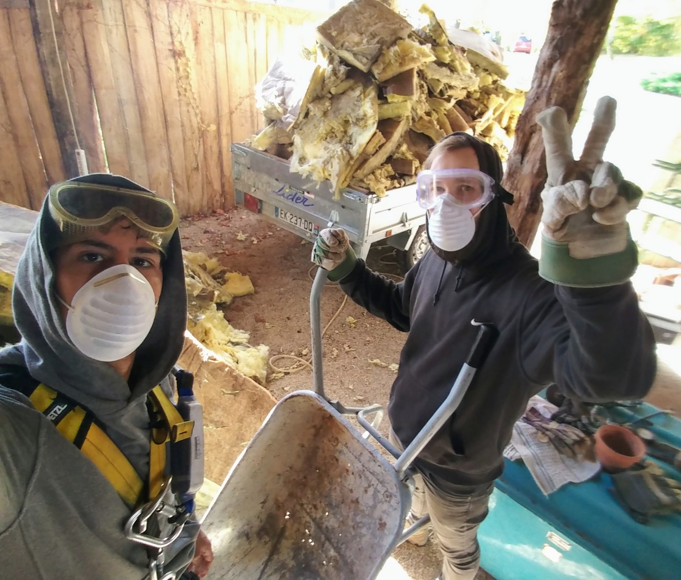 Limpiando un viejo granero para transformarlo en un centro cultural. Quercy, Francia.